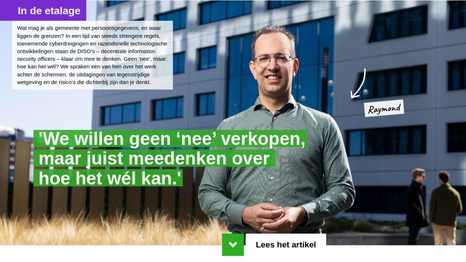 Wat mag je als gemeente met persoonsgegevens, en waar liggen de grenzen? In een tijd van steeds strengere regels, toenemende cyberdreigingen en razendsnelle technologische ontwikkelingen staan de DISO’s – decentrale information security officers – klaar om mee te denken. Geen ‘nee’, maar: hoe kan het wél? We spraken een van hen over het werk achter de schermen, de uitdagingen van tegenstrijdige wetgeving en de risico’s die dichterbij zijn dan je denkt.